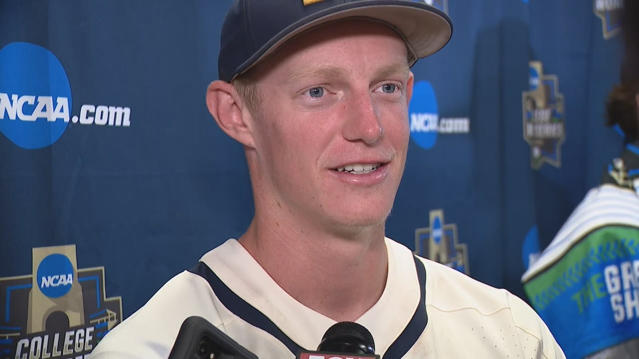 Wolverines' players Jimmy Kerr, Jordan Brewer & Head Coach Erik Bakich spoke following their 7-4 win in game one of the College World Series Championship.