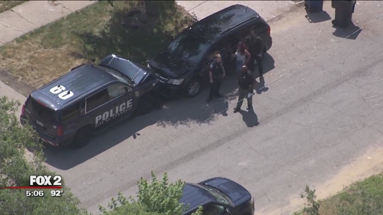 One person is in custody after leading police on a brief chase from Ferndale into Detroit. The car they were driving was a stolen police SUV.