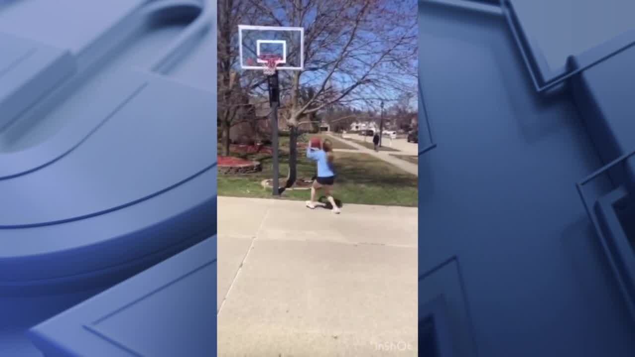 High school seniors from Livonia Stevenson put together a video of each other doing drills and shooting hoops. The video gets tied together thanks to one of the girls on the team who was taking a video editing class at school.