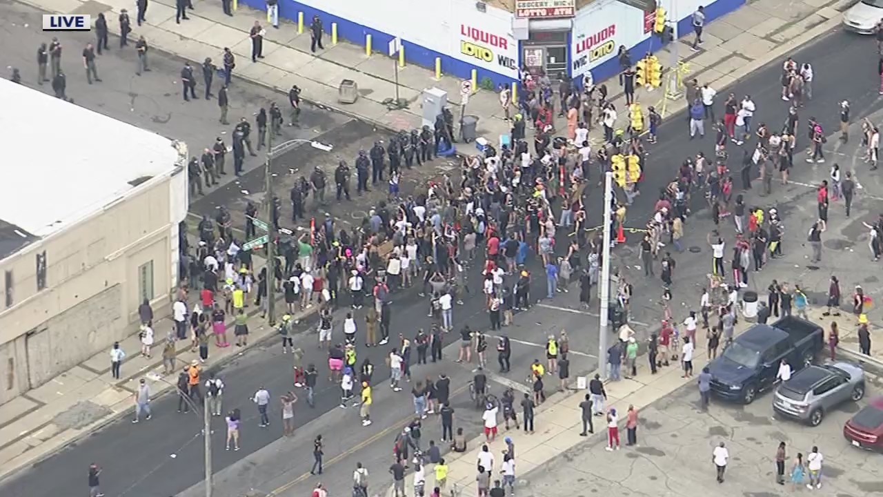 Protesters gather at scene of alleged armed suspect shot to death by Detroit police
