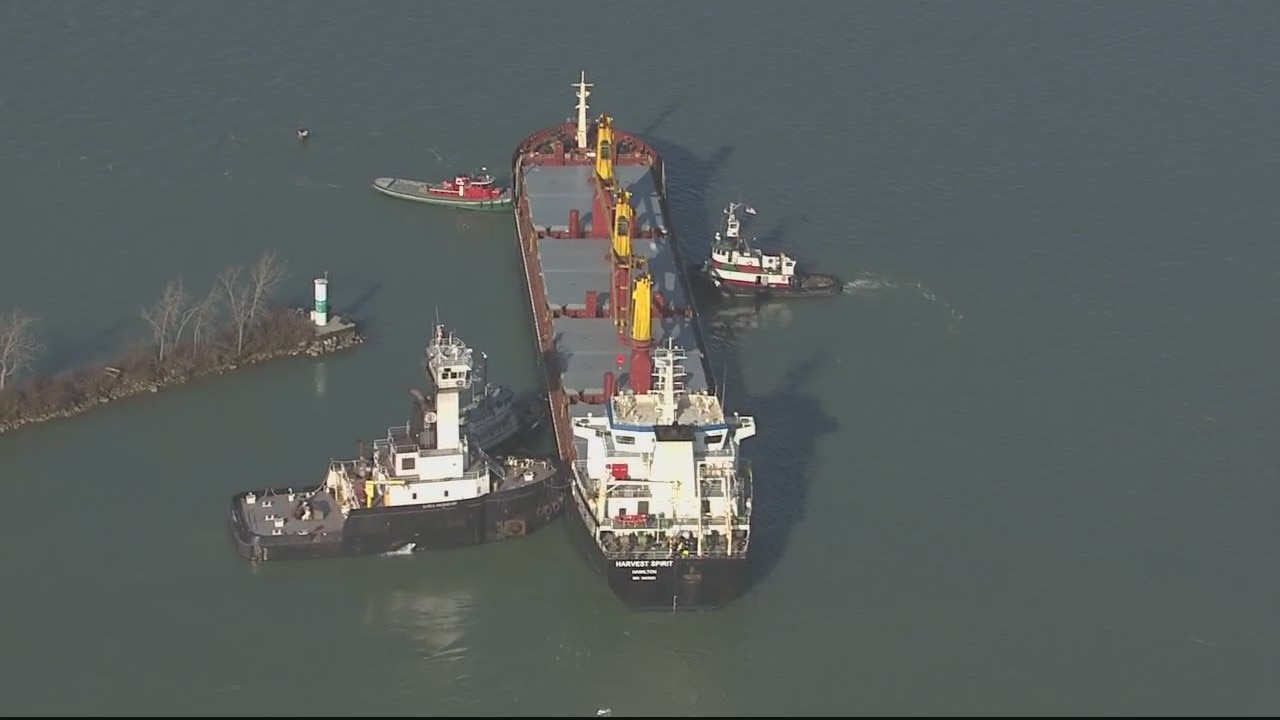Freighter still stuck in Detroit River two days after running aground