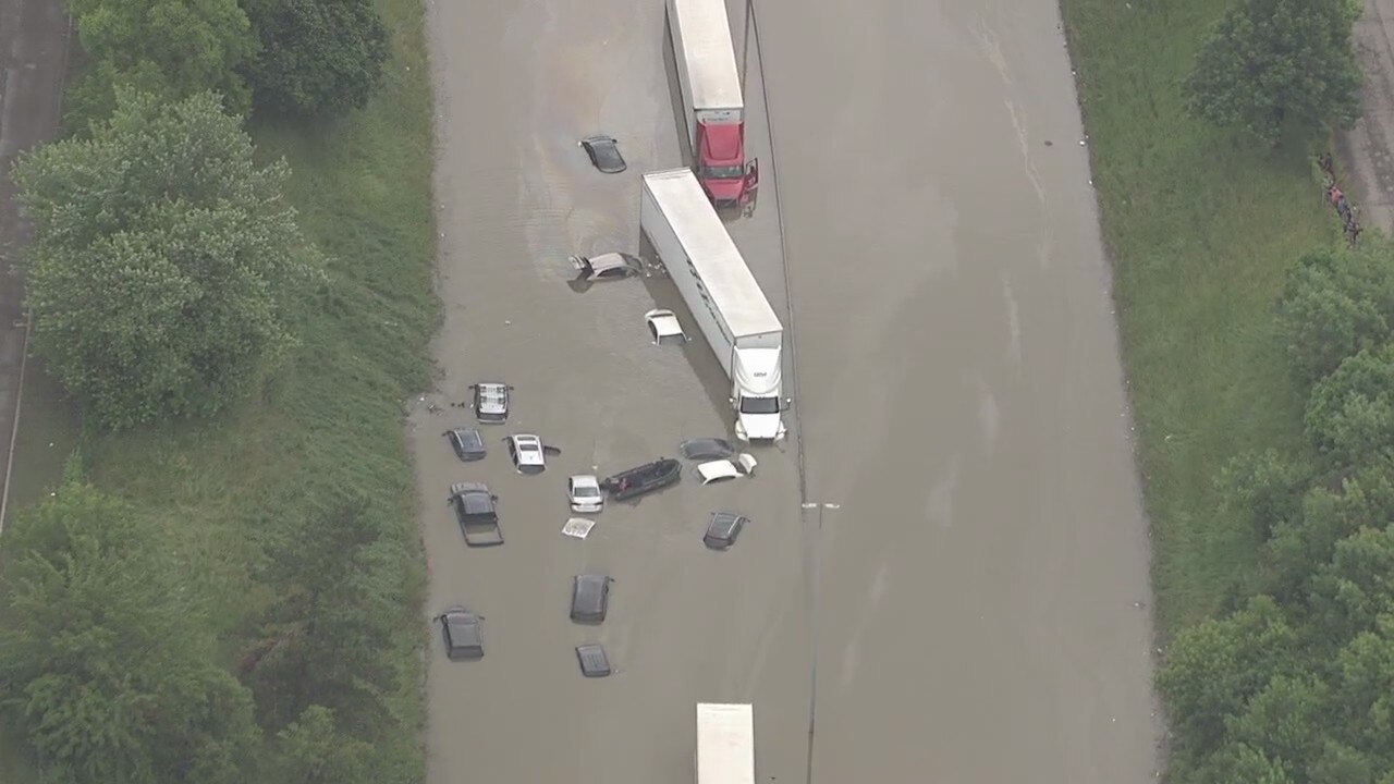 Floodwaters submerge vehicles on Metro Detroit freeways
