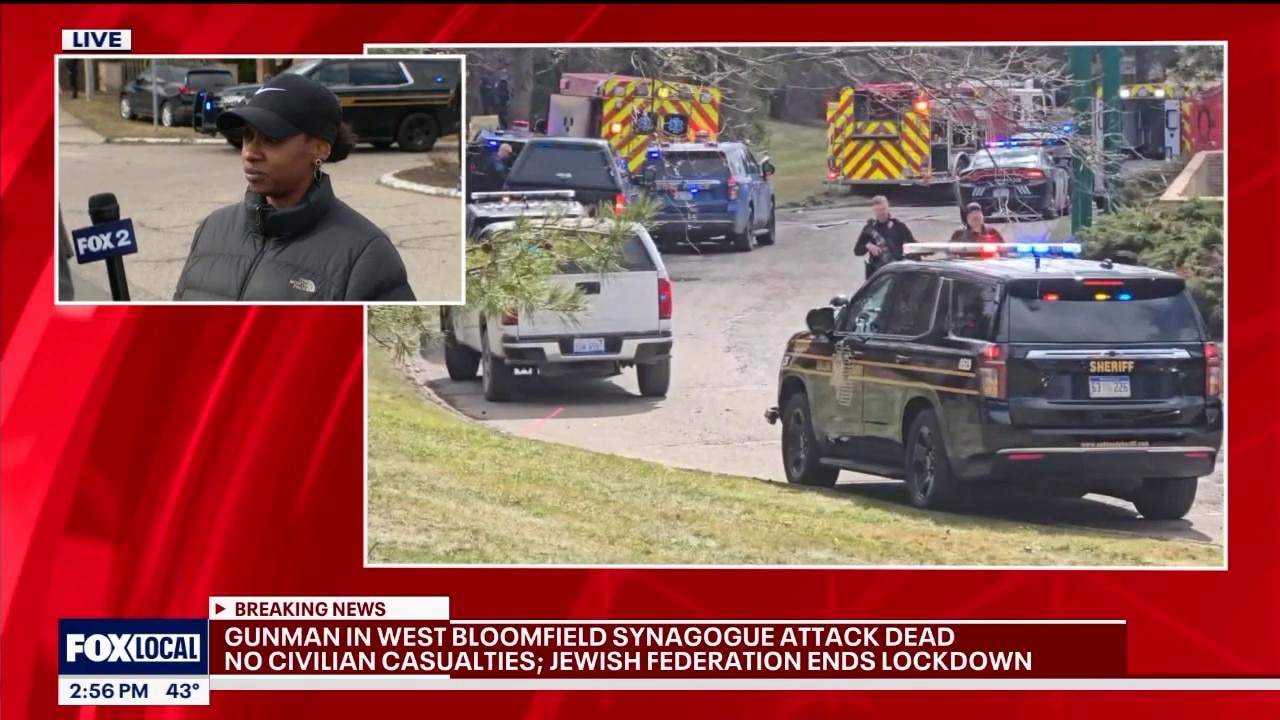 Jamie Vaughn said she was working at her home near Temple Israel when she saw police swarming the Jewish synagogue. An armed man is now dead, while a security guard suffered minor injuries after being struck by the shooter's vehicle.