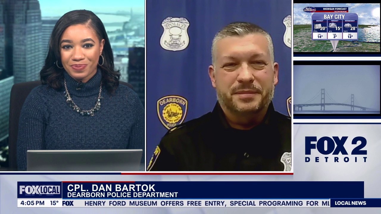 Jamie Sherrod speaks with Cpl. Dan Bartok with the Dearborn Police Department to discuss the school bus safety program that takes effect today.