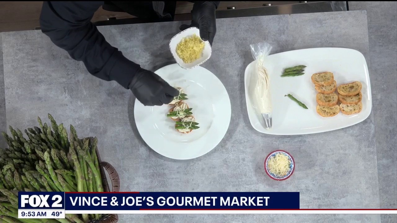 Vince & Joes Crostini with Boursin & Asparagus Tips