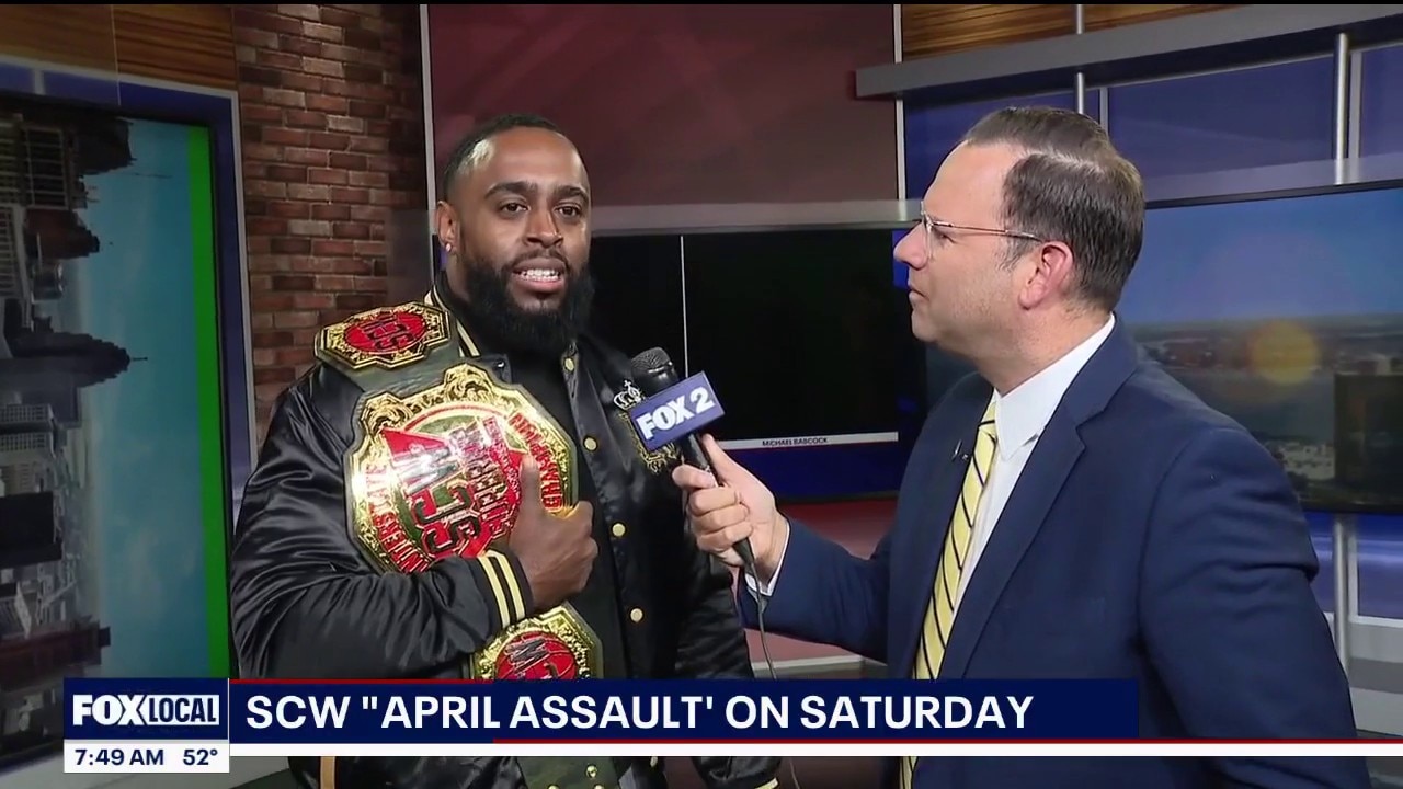 SCW wrestlers King Koley, Lex the Radical, Darion Ultra, and others, join Fox 2's Brandon Hudson for a return to the ring at Modern Skate & Surf for "April Assault," sponsored by Irish Tavern.