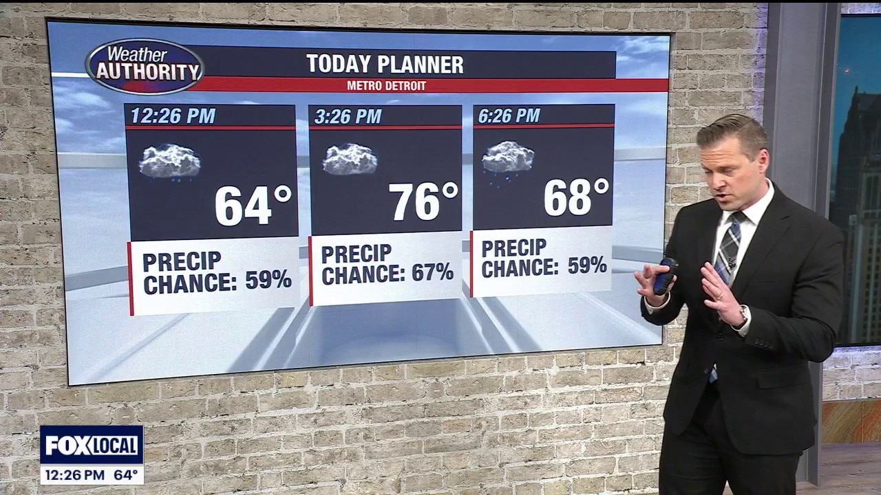 Showers developing across SE MI with some storms