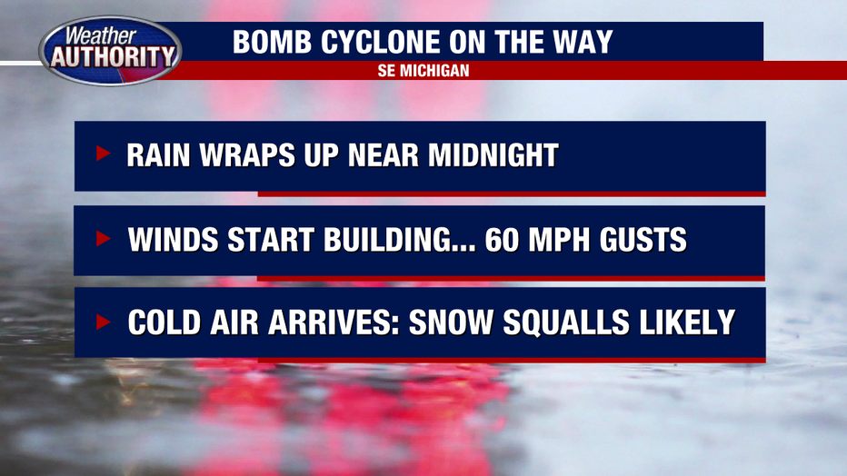 (FOX 2) - Wild weather continues to whip around southeast Michigan as we move through tonight and into Monday morning. The heavy rain is winding down, but scattered light showers will linger across the region through around midnight. Once the rain shuts off, the wind takes over — and it won’t be subtle. Get ready for a rough return to work, weather wise at least.