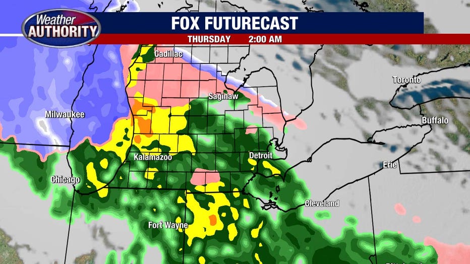 (FOX 2) - The rain is coming, but won't have much luck getting here today as it runs up into dry.