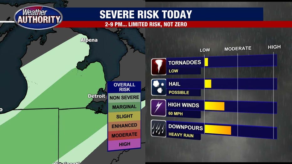 Southeast Michigan falls into the Marginal risk category, with the greatest threats being downpours and winds that could reach 60 mph.