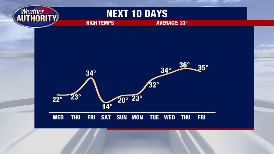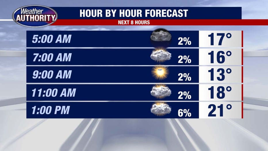 Highs will climb to the low 20s by early afternoon.