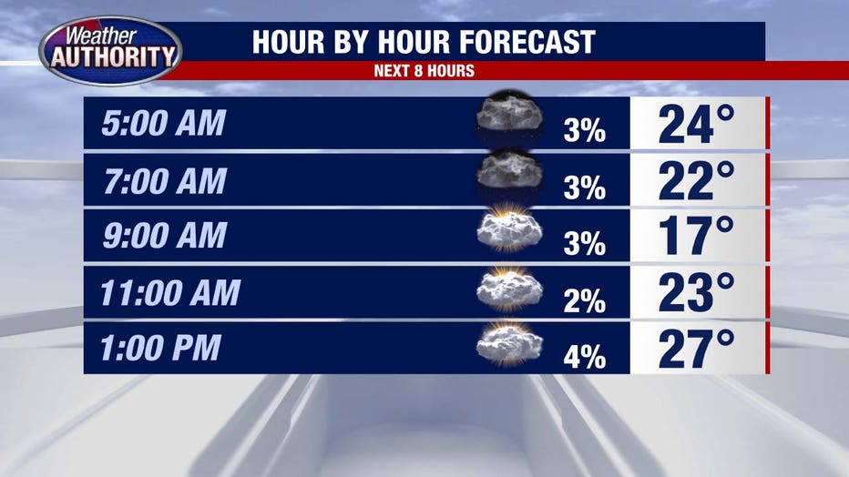 Then the bitter cold takes over, with wind chills dropping below zero Sunday morning. Many areas should expect double-digit negative wind chills.