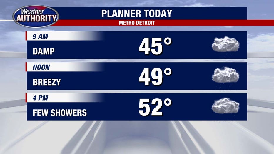 DETROIT (FOX 2) - Yesterday was cold and wet, and we’ll do it again in many ways today: cool, windy, and occasionally wet.