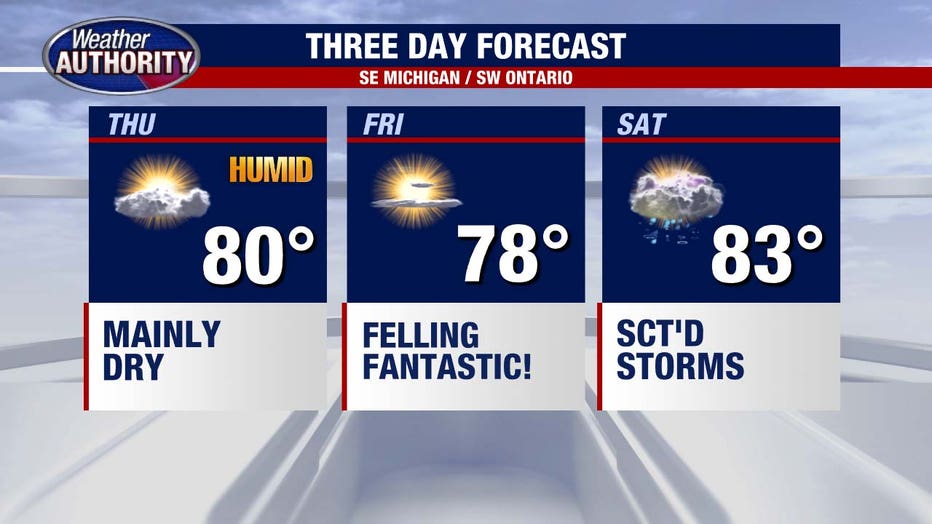 DETROIT (FOX 2) - We’ll catch a break from the rain Thursday, with nothing more than a brief and spotty shower possible.