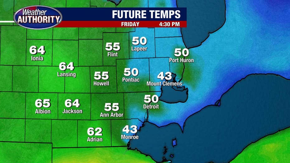 The warmth tries to work in, but I think most of us stay in the 50s by sunset, with the real surge of warmth arriving overnight and into Saturday.
