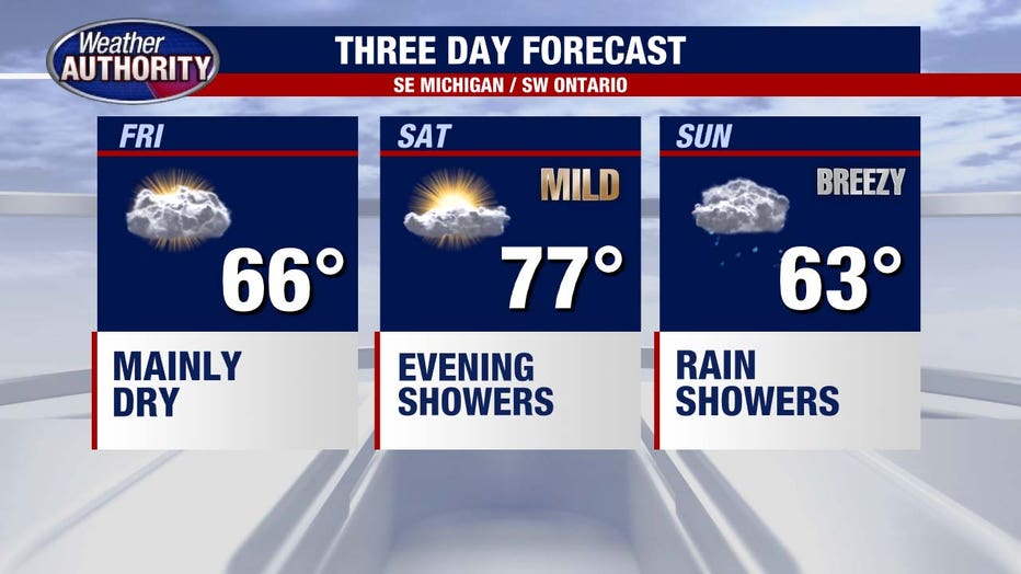DETROIT (FOX 2) - Wet weather’s making a comeback for the weekend, but we’ll get through Friday on the dry side with nothing more than a spotty early shower.