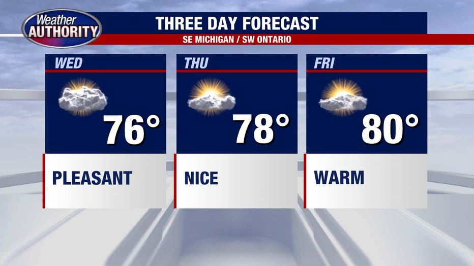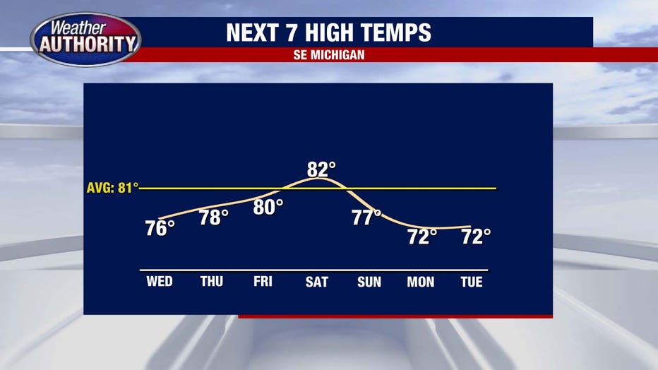 For now, the rain is done, outside of a stray sprinkle this morning. As it dries out, a fall-like feel moves into Metro Detroit. Highs climb into the mid-70s, and will stay in the 70s for most of the next week, aside from one day where they may get into the low 80s.