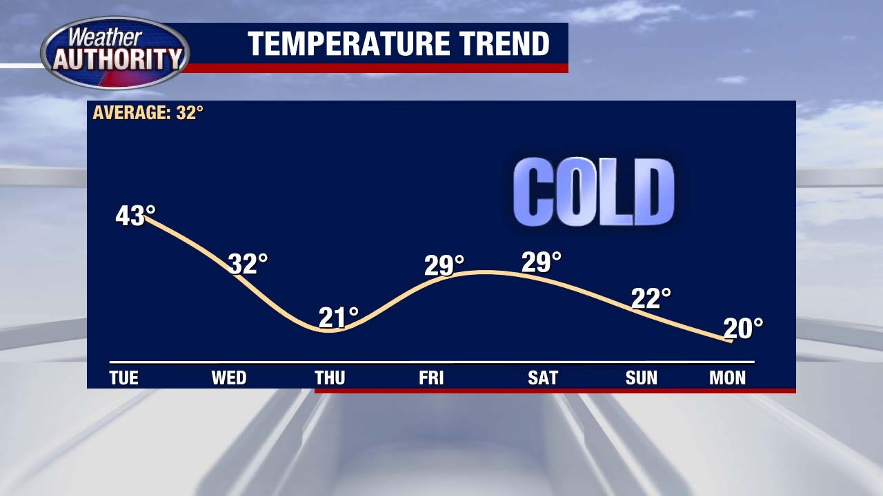 By Wednesday night into Thursday morning, we drop to around 12 degrees. Add in that breeze, and wind chills hover near zero. F