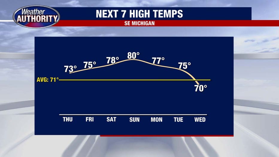 Temps climb, too! We'll take aim at 80 by Sunday and fade a bit next week. But before they drop, we'll get a stretch of above-average days.
