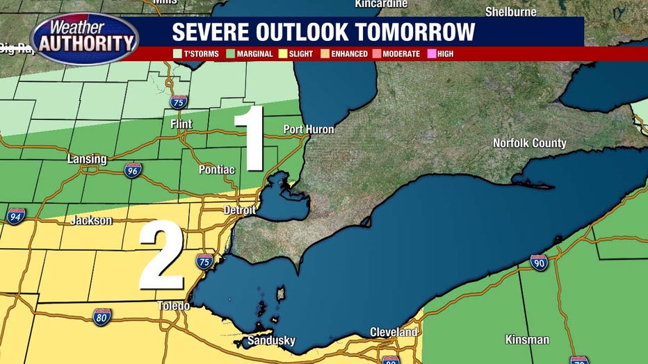 The tornado threat is even lower, but again, if instability sneaks into SE Michigan, it’s something worth watching. The Storm Prediction Center has SE Michigan under a 1 and 2 on a 5-point scale.