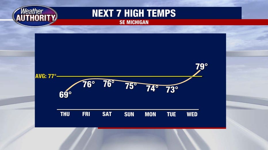DETROIT (FOX 2) - It’s a soggy start to your Thursday with rain tapering off this afternoon and temps struggling to hit 70°.
