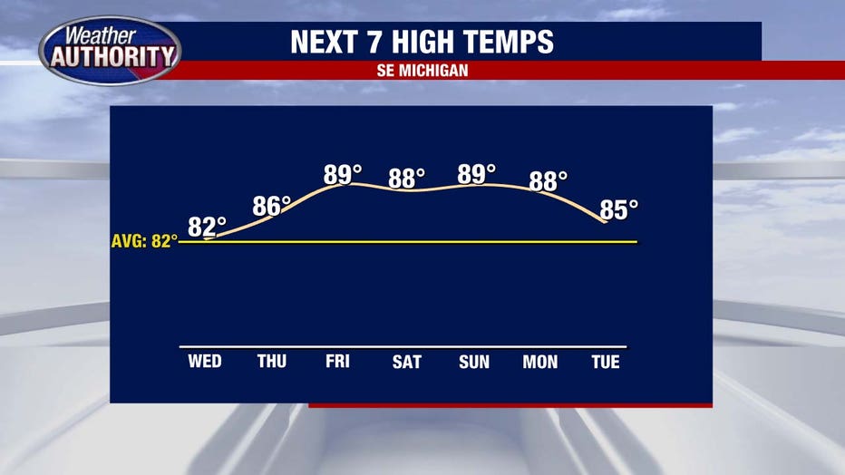 DETROIT (FOX 2) - After a stretch of 90+ degree days, we get a break from the heat, but storm chances remain.