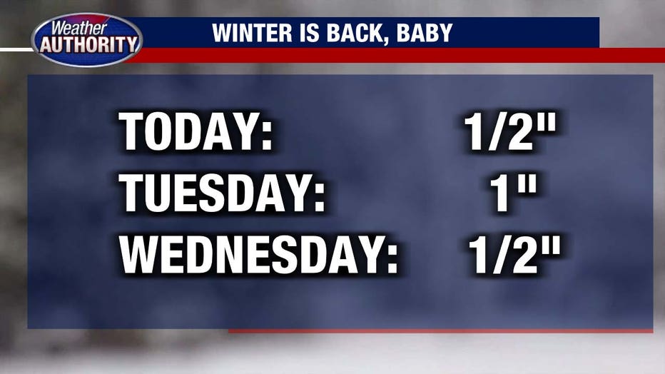 DETROIT (FOX 2) - Snow is setting the tone for this Monday morning, with periods of moderate to briefly heavy bursts coming down early before tapering off around 8 or 9 a.m.