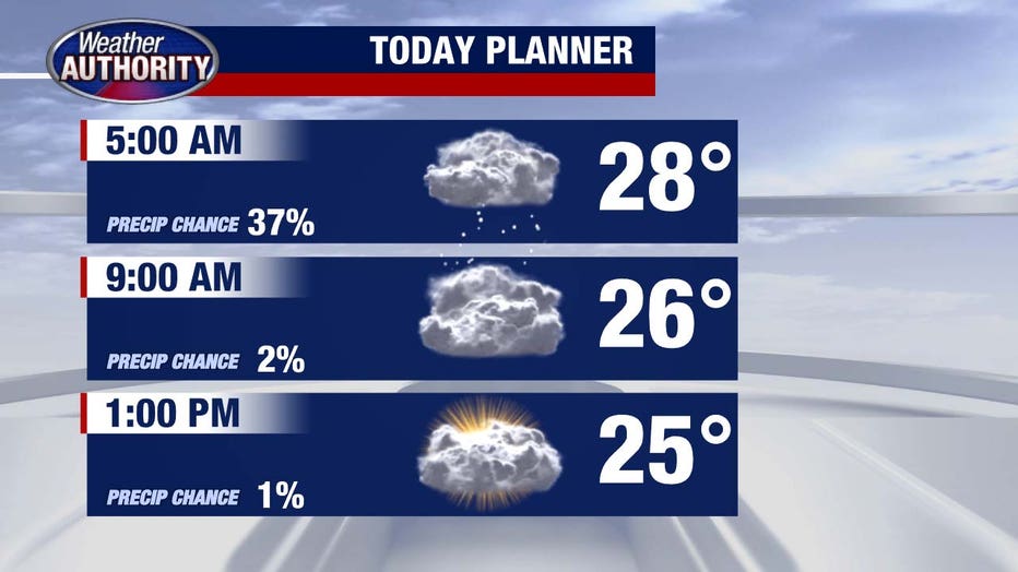 A few flurries may linger into Wednesday with highs around 34°, and then we keep an eye on Thursday.