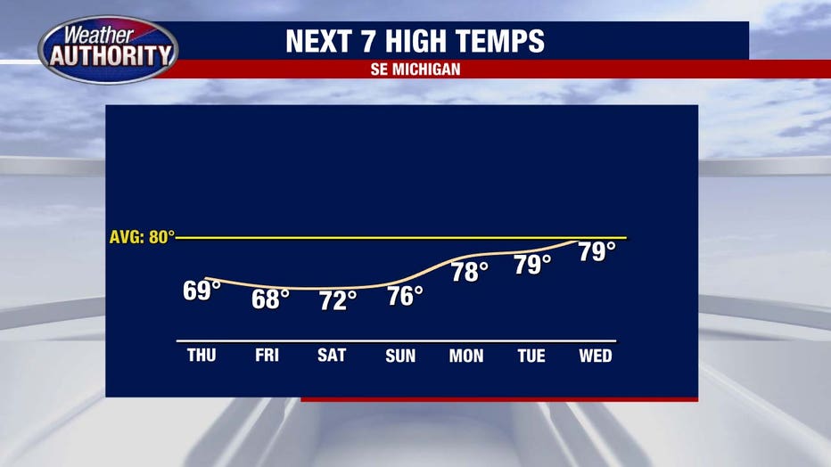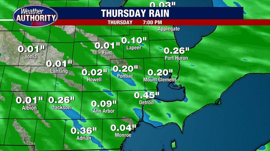 DETROIT (FOX 2) - Rain returns Thursday as temps struggle to reach 70° in Metro Detroit.