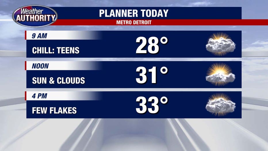 We’ll also contend with lake effect snow today, most persistent in the Thumb. Elsewhere it’s nothing more than a passing flurry or shower.