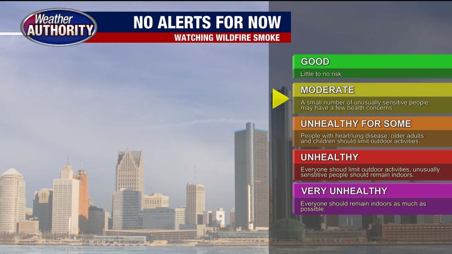 Smoke from the Canadian wildfires nudges our air quality higher than yesterday, though it’s not enough to trigger any advisories… at least for now.