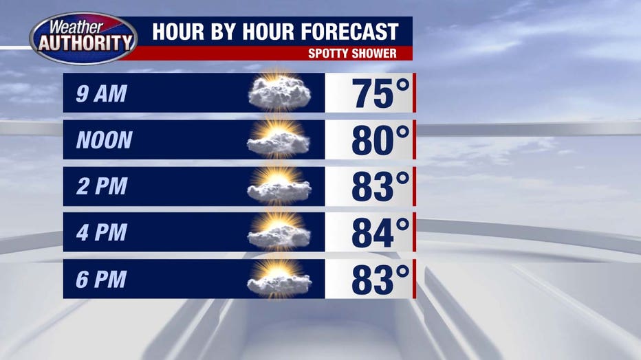 It's a damp start, but we'll stay dry outside of a random spotty shower as temps fade a touch.
