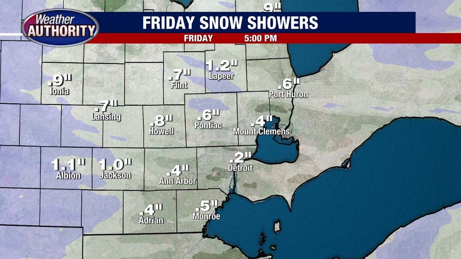 Temps plunge behind the system and by Friday morning icy spots are possible as leftover moisture freezes on untreated surfaces. Snow showers are likely Friday as well. Totals stay under an inch, but lake-effect bursts can briefly pack a punch in isolated areas.