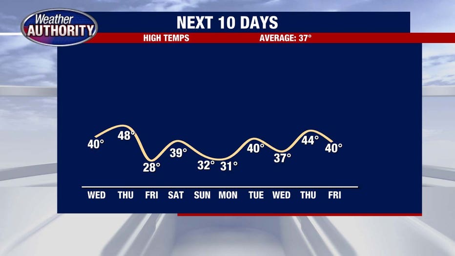 So yes, there’s some temperature yo-yoing ahead, but the bigger picture moving toward Christmas trends milder. Current forecasts take aim at the 40s on Christmas Day.
