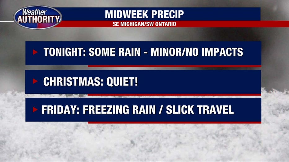 DETROIT (FOX 2) - We’re watching for the potential for freezing rain Friday, but we’ll make it through Christmas Eve and Christmas Day on a mostly quiet note.