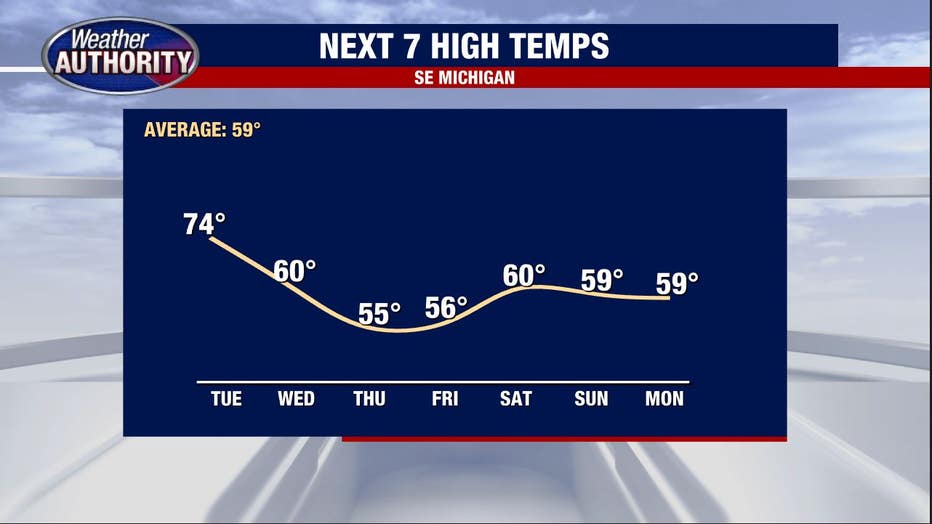 Low temperatures fall back into the 30s and our highs drift into the 50s.