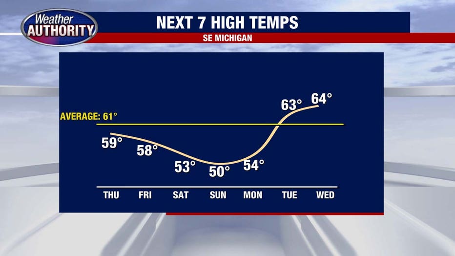 Rain showers carry us into the weekend as temperatures dip across Southeast Michigan