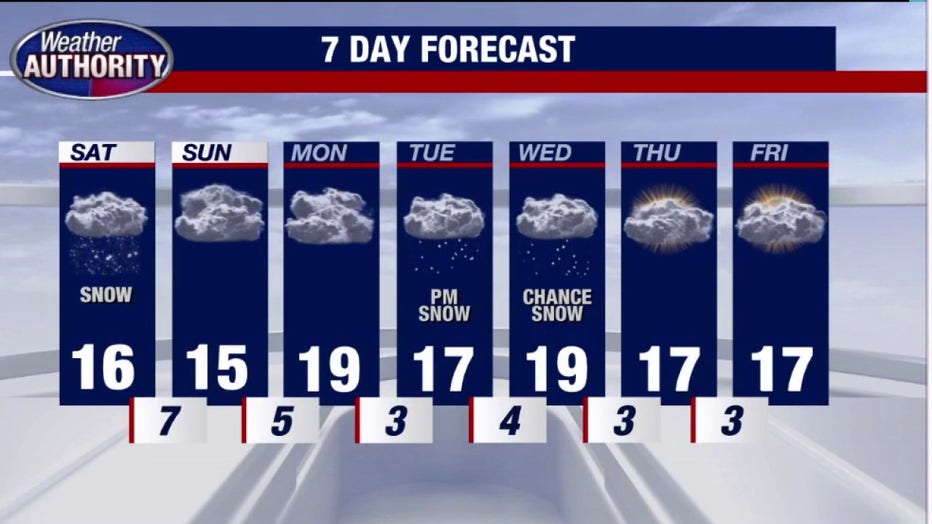 Temperatures won't climb higher than 20 degrees, which will be the warmest the week gets.