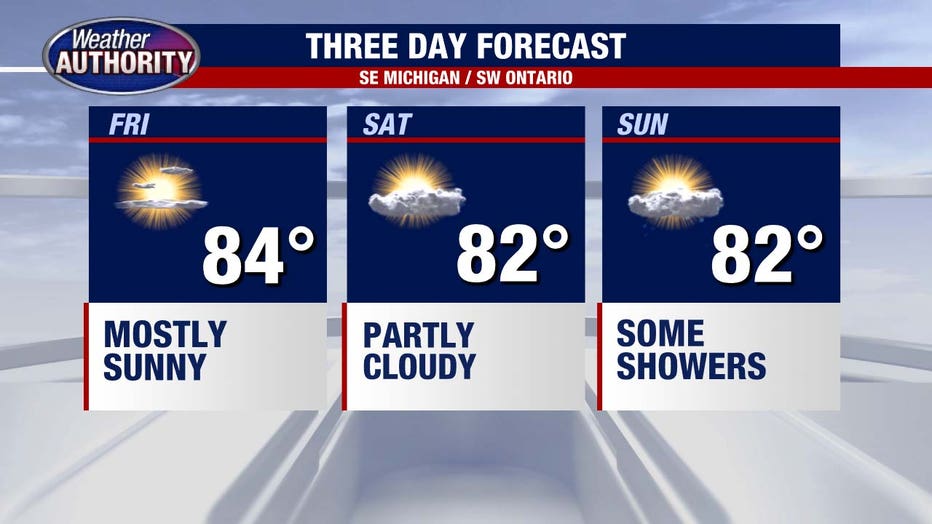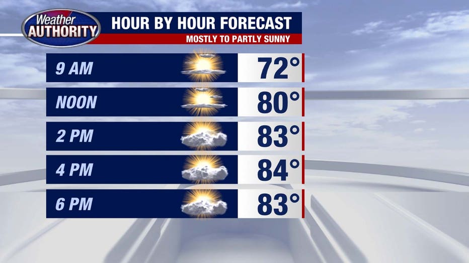 Temperatures will head down from yesterday's high (86 degrees) centering on either side of 80 degrees next week.