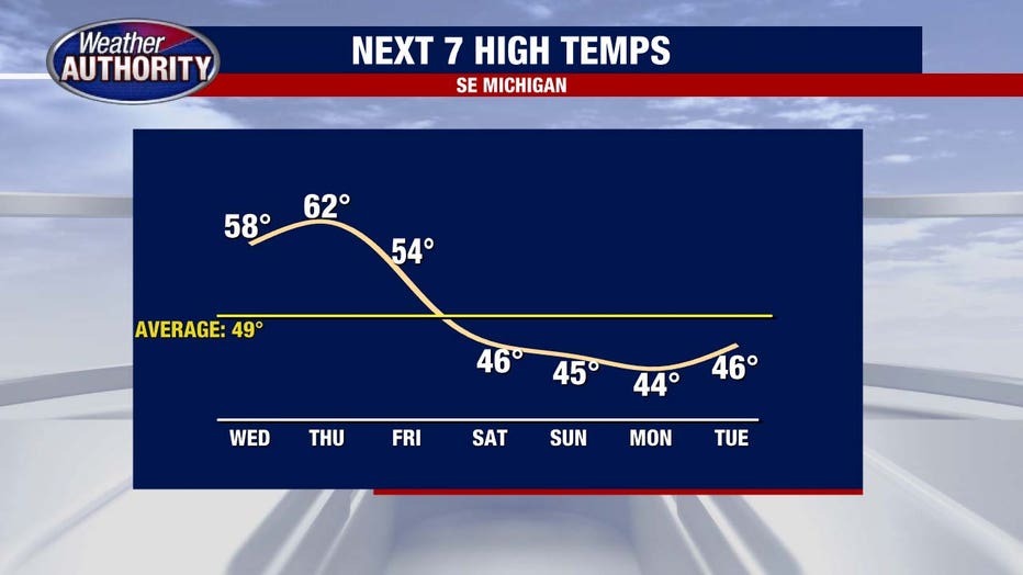 (FOX 2) - Our sweet stretch of weather continues on Wednesday with temperatures cresting in the high 50s in the late afternoon.