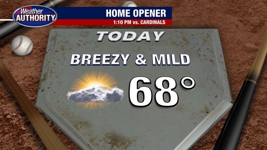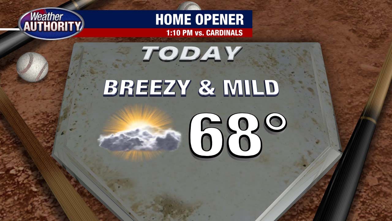 You’ll notice the wind and there’s a tiny chance for a brief shower anytime from about 8 to 10 a.m., but dry weather will easily win the day. By first pitch, temperatures will be close to 70.