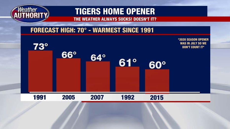 If we make it to 70, that'll be the warmest Tigers Home Opener since 1991.