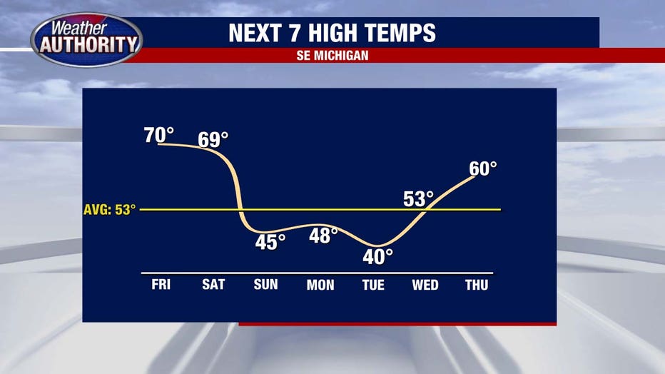 Then comes the sharp cool-down for Easter Sunday, with a few flurries possible to close out the weekend.