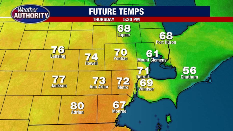 Warm temperatures return for a day with high 70s around Metro Detroit