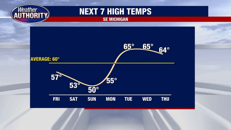 Temperatures bottom out Sunday as we struggle to get to 50 but rebound quite nicely next week.