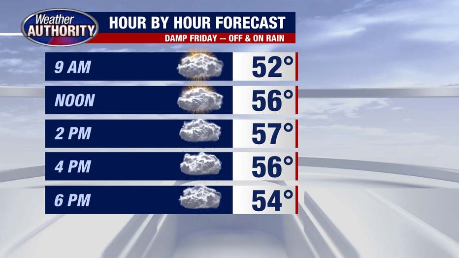 Off and on rain showers through the day, though they don't amount to a ton. Totals will be limited by the time it's done falling.
